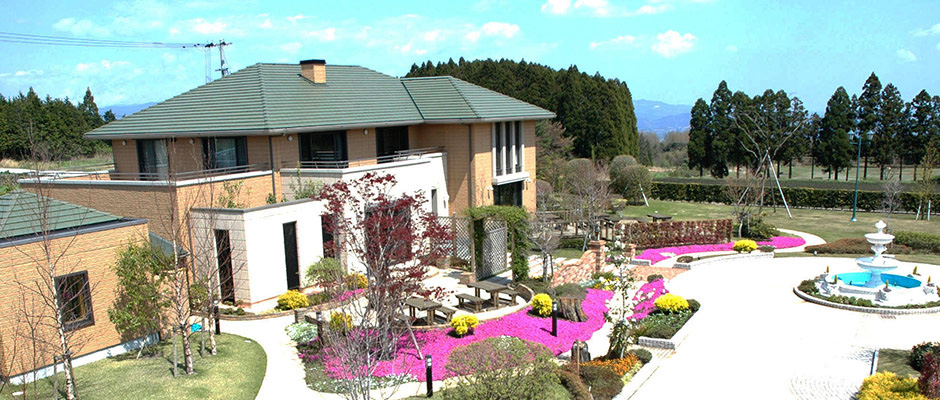 Our guest house located next to Ikoma factory is utilized for our customers who visit Miyazaki prefecture to take part in factory tours or seminars. There are an open-air bath, sauna bath, kitchen, living room, and guest rooms with a great view of Kirishima Mountains.